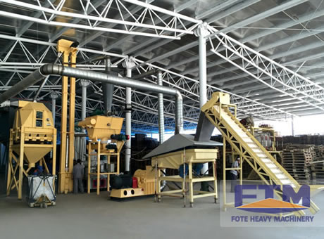 处理流程: 粗碎、烘干、细碎、输送、制粒、提升、冷却、筛分、除尘、包装
